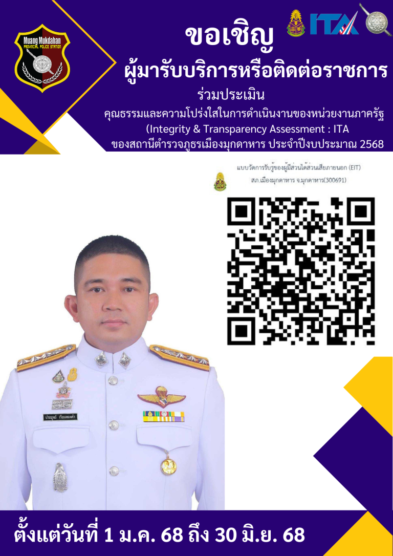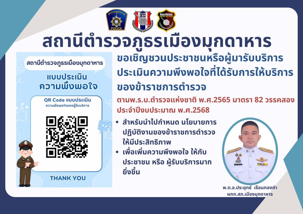วันที่ ๓๑ ธ.ค. ๒๕๖๘ ภายใต้การอำนวยการของพ.ต.อ.ประยุทธ์ เรือนทองคำ ผกก.สภ.เมืองมุกดาหารพ.ต.ท.พลไชย ภู