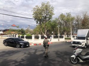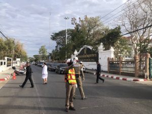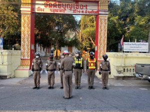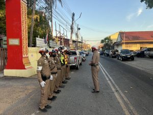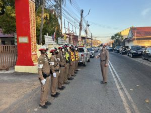 อำนวยความสะดวกด้านการจราจร พิธีสวดพระพุทธมนต์ ทำบุญตักบาตร และวางพานพุ่ม เนื่องในวันที่ระลึกพระบาทสมเด็จพระพุทธเลิศหล้านภาลัย