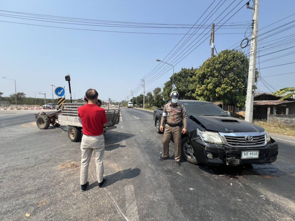 ว.4 เหตุ ว.40 รถยนต์ กับ รถไถนาเดินตาม ต่อล้อพ่วงลากจูง
