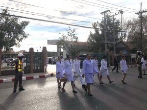 เมือง 2 เมือง 20,201 พร้อม นสต.ฝึกงาน ว.4 ปล่อยแถวร่วมกับสำนักงานศึกษาธิการจังหวัดมุกดาหาร เนื่องในเทศกาลวันวาเลนไทน์ เพื่อเฝ้าระวังปัญหาความประพฤตินักเรียนและนักศึกษา บริเวณ สำนักงานศึกษาธิการจังหวัด