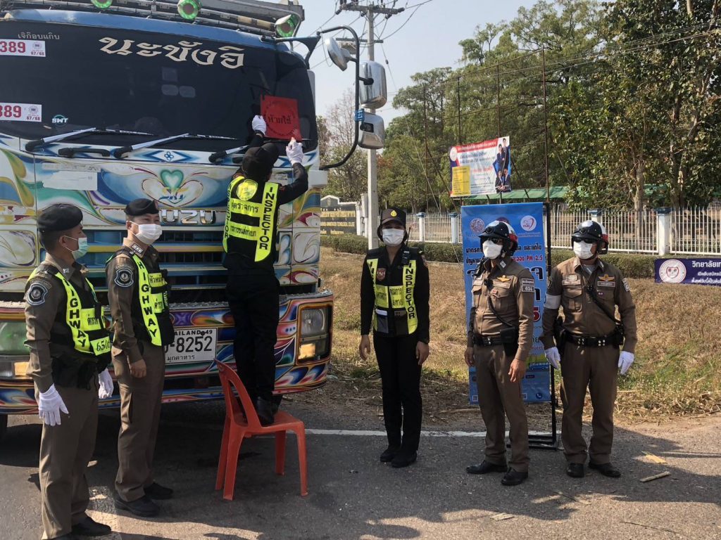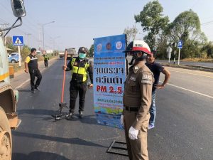 พร้อม ว.๓๐ จราจร บูรณาการร่วมกับสำนักงานขนส่งจังหวัดมุกดาหาร, แขวงการทางชนบทจังหวัดมุกดาหาร, ตำรวจทางหลวงมุกดาหาร ว.๔๓ กวดขันรถควันดำ เพื่อป้องกันและแก้ไขปัญหามลพิษฝุ่นละออง PM 2.5 บริเวณถนนเลี่ยงเมืองมุกดาหาร – อ.นิคมคำสร้อย หน้าวิทยาลัยเทคโนโลยีบริหารธุรกิจรักไทย อ.เมือง จ.มุกดาหาร