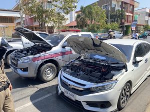 – 6114 ว.4 เหตุ ว.40 บริเวณสี่แยกซอยไดมอนด์ถนนพิทักษ์สันติราษฎร์ เป็นรถจักรยานยนต์กับรถยนต์ตู้ มีผู้ได้รับบาดเจ็บ 1 ราย แนะนำคู่กรณีพบพนักงานสอบสวนที่01