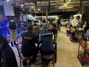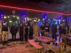 พร้อมสายตรวจชุด 2 ร่วมกับฝ่ายปกครอง สาธารณสุขจังหวัด กรมสรรพสามิต ตรวจสถานบริการ ดำเนินการจัดระเบียบสังคม เพื่อปฏิบัติการตามแผนปฏิบัติการเร่งรัดการดำเนินการป้องกันและปราบปราม สถานบริการ