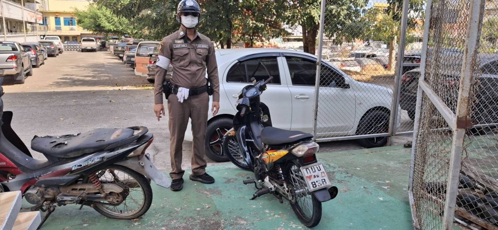 ว.๔ ตรวจยึดรถจักรยานยนต์ ไม่มีเอกสารแสดงการครอบครอง , อุปกรณ์ส่วนควบไม่ครบถ้วน จำนวน 1 คัน