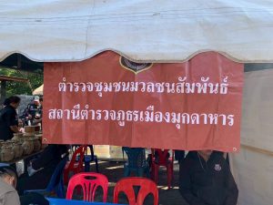 พร้อมด้วยตำรวจชุมชนมวลชนสัมพันธ์ สภ.เมืองมุกดาหาร และ นสต.ศฝร.ภ4ฝึกงาน ร่วมกิจกรรมกับส่วนราชการตามโครงการอำเภอยิ้มเคลื่อนที่ เพื่อนำข้อราชการที่สำคัญแจ้งให้ประชาชนทราบและมอบสิ่งของ ในส่วน สภ.เมืองมุกดาหาร ได้นำความรู้เรื่องการป้องกันภัยอาชญากรรมภัยออนไลน์ และภัยจากยาเสพติด