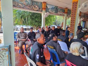ร่วมกิจกรรม การประชุมเสริมสร้างศักยภาพ ชุดรักษาความปลอดภัยหมู่บ้าน ในการรักษาความสงบเรียบร้อยในหมู่บ้านและสาธิต การตั้งจุดตรวจจุดสกัด ให้กับ ชุดชรบ.หมู่บ้าน