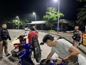 – ได้ตรวจยึดรถจักรยานยนต์ ไม่ติดแผ่นป้ายทะเบียน ไม่แสดงสำเนาคู่มือรถ จำนวน 1 คัน