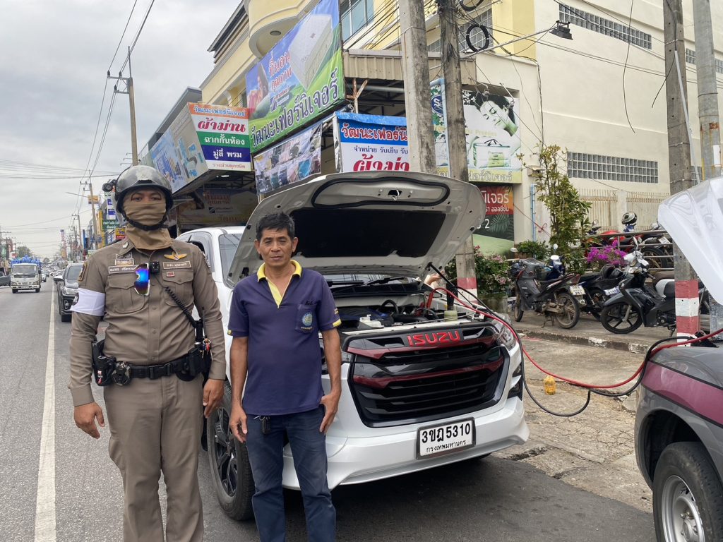 ร.ต.อ.อุทิตย์ ศรีลาศักดิ์ เมือง 60 พร้อมด้วยว.30 จราจรให้ความช่วยเหลือพ่วงแบตเตอรี่ สามารถเดินทางต่อไปได้
