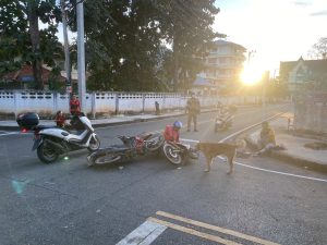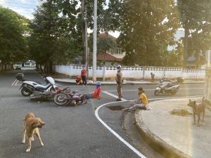 เมือง 620 , 6112, 6115 ว.4 เหตุ ว.40 สี่แยก บ้านพักธนารักษ์พื้นที่มุกดาหาร เป็นรถจักรยานยนต์กับรถจักรยานยนต์ มีผู้ได้รับบาดเจ็บ 3 ราย รถทั้งสองคันได้รับความเสียหาย กีดขวางการจราจร แจ้งกู้ชีพ รับผู้บาดเจ็บ แจ้งร้อยเวร 40 ว.4 ที่เกิดเหตุเรียบร้อย