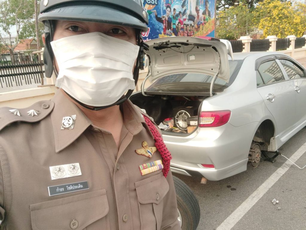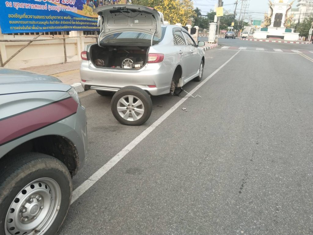 พร้อม ว.30 จราจร ฯ ขณะออกตรวจพบรถยนต์ของประชาชนยางรั่ว บริเวณหน้าศูนย์การท่องเที่ยว จึงได้ลงไปให้ความช่วยเหลือ และสามารถเดินทางต่อไปได้