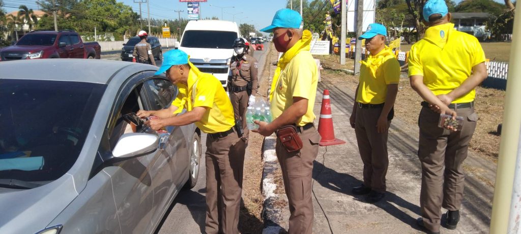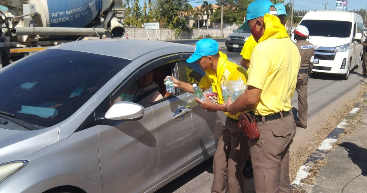 จิตอาสาพระราชทานประชาสัมพันธ์ให้ความรู้ และแจกหมวกนิรภัยให้ประชาชนที่ใช้รถจักรยานไม่มีหมวกนิรภัย จำนวน 4 ใบ ตามโครงการจิตอาสาจราจร รณรงค์การขับขี่รถจักรยานยนต์ปลอดภัยสวมหมวกนิรภัย ในช่วงเทศกาลปีใหม่ พ.ศ.๒๕๖๘