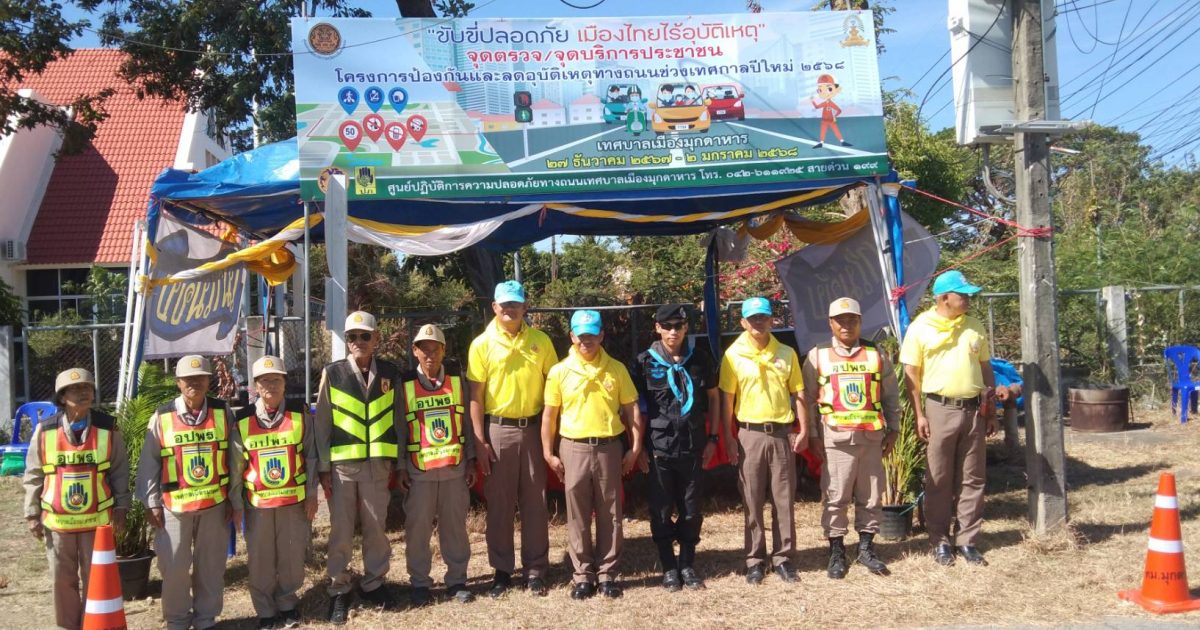 วันที่ ๑ มกราคม ๒๕๖๘ เวลา ๐๙.๐๐ น. ภายใต้การอำนวยการของ พ.ต.อ.ประยุทธ์ เรือนทองคำ ผกก.สภ.เมืองมุกดาหาร พ.ต.ท.คมกริช วงษ์ชารี รอง ผกก.ป.สภ.เมืองมุกดาหาร พ.ต.ท.อำพร สพานหล้า สวป.ฯ มอบหมายให้ พ.ต.ต.ภาคภูมิ หมื่นราชา สวป.(ชส.)ฯ สภ.เมืองมุกดาหาร พร้อมด้วยข้าราชการตำรวจจิตอาสา สภ.เมืองมุกดาหารและประชาชนจิตอาสา ได้ร่วมกันดำเนินกิจกรรมจิตอาสาฯห้วงเทศกาลปีใหม่ ประจำปี ๒๕๖๘ โดยได้แจกจ่าย น้ำดื่ม แผ่นพับ แจ้งเตือนให้กับประชาชนผู้ใช้รถใช้ถนนที่สัญจรไปมา เพื่อความปลอดภัยในการขับขี่ยานพาหนะ
