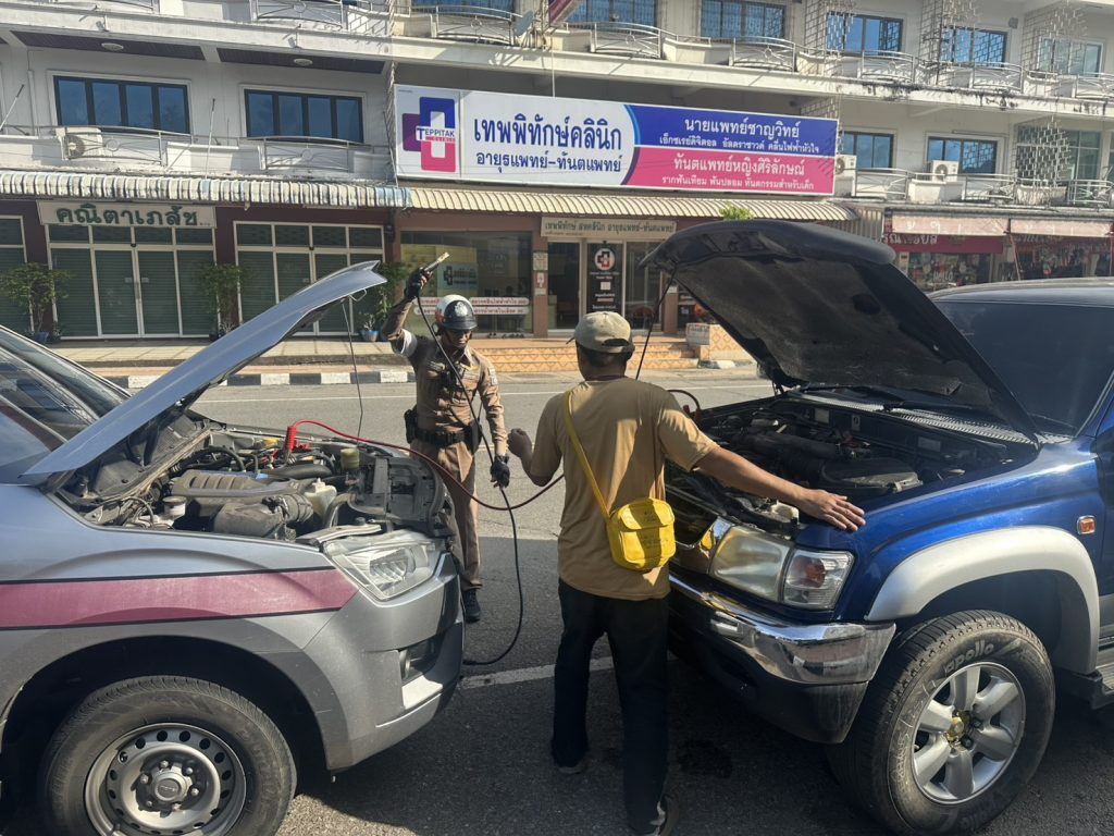 จร. 616,6108 ให้การช่วยเหลือประชาชน รถยนต์แบตตารี่หมด บริเวณสี่แยกนำเจริญ ทำการพ่วงแบตฯ สามารถเดินทางไปต่อได้