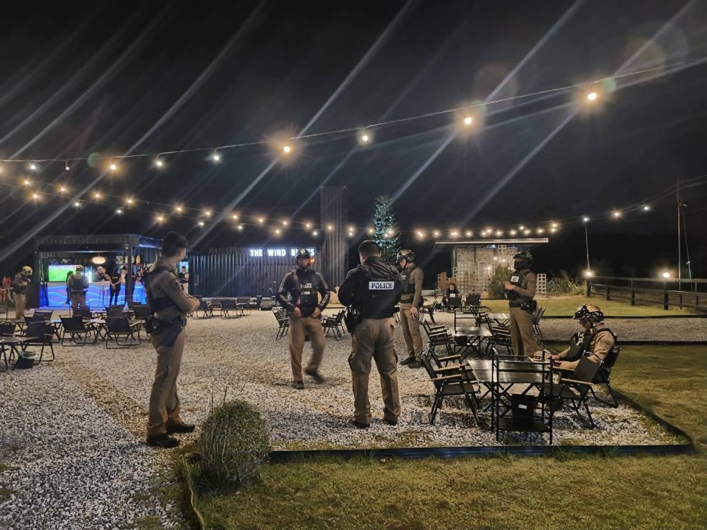พร้อมสายตรวจชุด 2 ร่วมกับฝ่ายปกครอง สาธารณสุขจังหวัด กรมสรรพสามิต ตรวจสถานบริการ ดำเนินการจัดระเบียบสังคม เพื่อปฏิบัติการตามแผนปฏิบัติการเร่งรัดการดำเนินการป้องกันและปราบปราม สถานบริการ