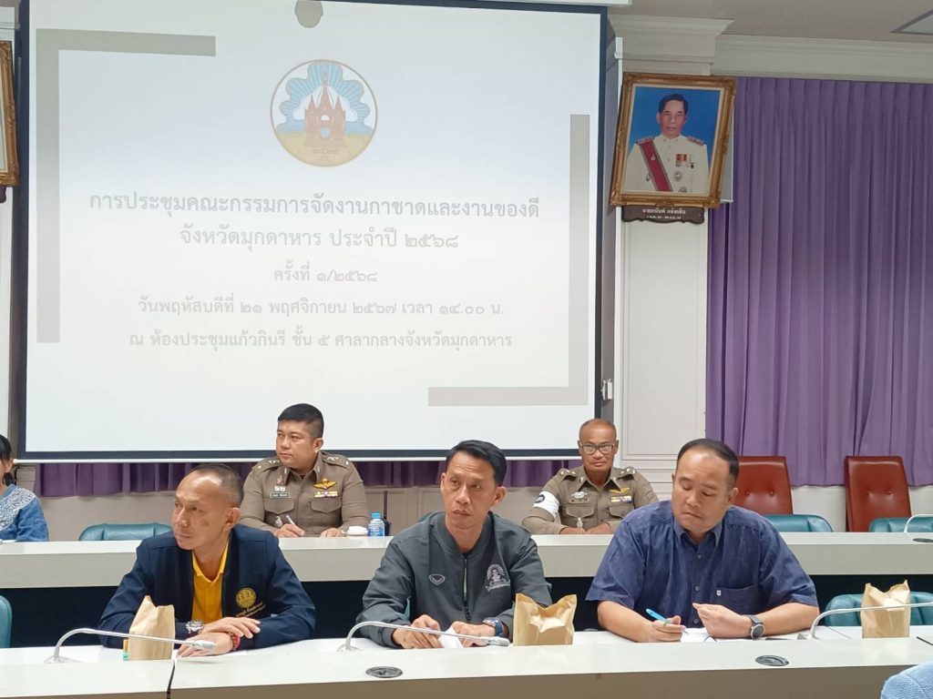 วันที่ 21 พ.ย.67 เวลา 14.00-16.40 น. พ.ต.อ.ประยุทธ์ เรือนทองคำ ผกก.สภ.เมืองมุกดาหาร ร่วมประชุมเตรียมความพร้อมจัดงานกาชาดและงานของดีจังหวัดมุกดาหาร ซึ่งจะจัดขึ้นระหว่างวันที่ 7 -15 มกราคม 2568 ณ ห้องประชุมแก้วกินรี ชั้น 5 ศาลากลางจังหวัดมุกดาหา โดย นายวรญาณ บุญณราช ผู้ว่าราชการจังหวัดมุกดาหาร เป็นประธาน
