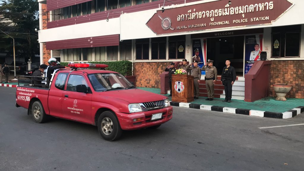ภายใต้การอำนวยการของ พล.ต.ต.ชัชชัย วงค์สุนะ ผบก.ภ.จว.มุกดาหาร มอบหมายให้ พ.ต.อ.ธานินทร์ อินทพรต รอง ผบก.ภ.จว.มุกดาหาร เป็นประธานในพิธีปล่อยแถวป้องกันปราบปรามอาชญากรรมรักษาความสงบเรียบร้อย การบังคับใช้กฎหมายและอำนวยความสะดวกด้านการจราจรช่วงวันคริสต์มาสและเทศกาลปีใหม่ 2568 โดยมี พ.ต.อ.ประยุทธ์ เรือนทองคำ ผกก.สภ.เมืองมุกดาหาร,พ.ต.ท.คมกริช วงษ์ชารี รอง ผกก.ป.สภ.เมืองมุกดาหาร,พ.ต.ท.ฉัตรมงคล บุญกลาง รอง ผกก.สส.สภ.เมืองมุกดาหาร,เจ้าหน้าที่ตำรวจสภ.เมืองมุกดาหาร,กก.สส.ภ.จว.มุกดาหาร,เจ้าหน้าที่ฝ่ายปกครอง,เทศกิจเมืองมุกดาหาร,นรข.มุกดาหาร,ตำรวจน้ำมุกดาหาร,ตม.มุกดาหาร,ตำรวจทางหลวงมุกดาหาร,ตชด.234 ร่วมพิธีปล่อยแถวฯ ณ ลานหน้าอาคารที่ทำงาน สภ.เมืองมุกดาหาร