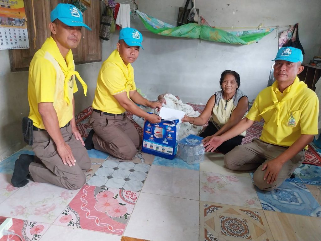 สิ่งของที่นำมอบให้ผู้ป่วยมี กางเกงผ้าอ้อมผู้ใหญ่ นัำดื่มและผ้ายางกันเปื้อน1ผืนพร้อมด้วยเงินจำนวนหนึ่งเพื่อไว้ใช้จ่ายในชีวิตประจำวันต่อไป
