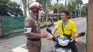 วันที่ 4 ต.ค.2567 ร.ต.อ.กำธร โชติประเดิม รอง สว.จร.สภ.เมืองมุกดาหาร ว.30 จราจร สภ.เมืองมุกดาหาร ร่วมกับเจ้าหน้าที่เทศกิจ ทม.มุกดาหารรณรงค์การสวมหมวกนิรภัย 100% ขณะขับขี่รถจักรยานยนต์ โดยมีศาลากลางจังหวัดมุกดาหาร เป็นสถานที่นำร่อง เพื่อให้ข้าราชการทุกภาคส่วน และ ประชาชนชาว จ.มุกดาหาร สวมหมวกนิรภัย เพื่อป้องกันการบาดเจ็บจากการเกิดอุบัติเหตุและการเคารพปฏิบัติตามกฎหมายจราจร เพื่อให้เป็นตัวอย่างที่ดีแก่คนอื่นต่อไป