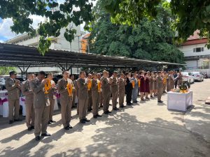 วันที่ 1 ต.ค.2567 เวลา 07.00 น. ร.ต.อ.อุทิตย์ ศรีลาศักดิ์ รอง สวป.สภ.เมืองมุกดาหาร ปฏิบัติหน้าที่งานจราจร สภ.เมืองมุกดาหาร พร้อมด้วย ว.30 จราจร ว.4 อำนวยความสะดวกการจราจร พิธีสวดพระพุทธมนต์และพิธีทำบุญตักบาตร ถวายพระราชกุศลเนื่องในวันที่ระลึกพระบาทสมเด็จพระจอมเกล้าเจ้าอยู่หัว วันอังคารที่ 1 ต.ค.2567 ณ บริเวณลานหน้าศาลากลางจังหวัดมุกดาหาร/อาคาร 250 ปี