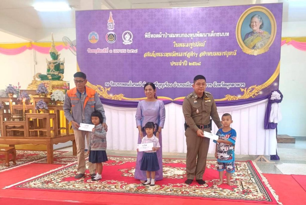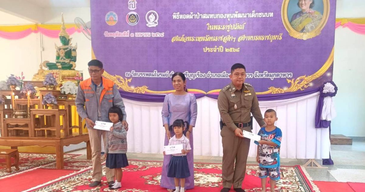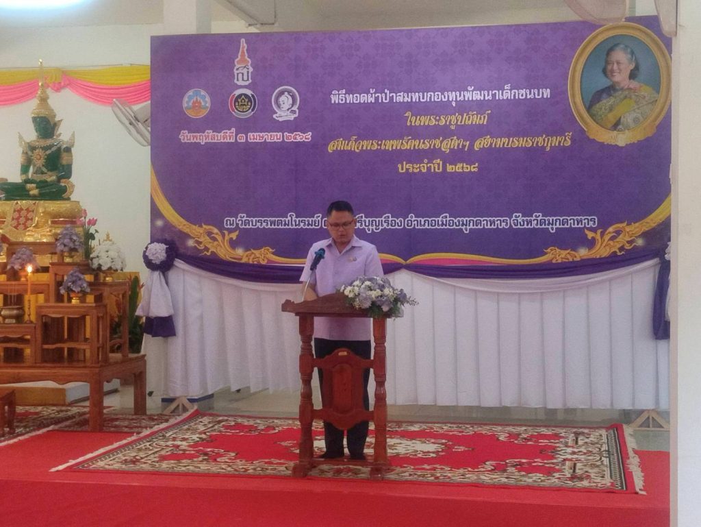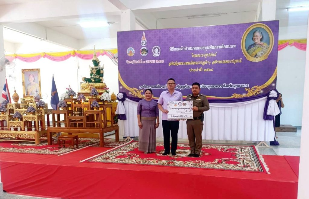 พ.ต.อ.ประยุทธ์ เรือนทองคำ ผกก.สภ.เมืองมุกดาหาร ร่วมพิธีทอดผ้าป่าสมทบกองทุนพัฒนาเด็กชนบท ในพระบรมราชูปถัมภ์ สมเด็จพระเทพรัตนราชสุดา ฯ ประจำปี 2568 โดยมี นายรณรงค์ เทพรักษ์ รองผู้ว่าราชการจังหวัดมุกดาหาร เป็นประธาน. ณ วัดบรรพตมโนรมย์ ต.นาสีนวน อ.เมือง จ.มุกดาหาร