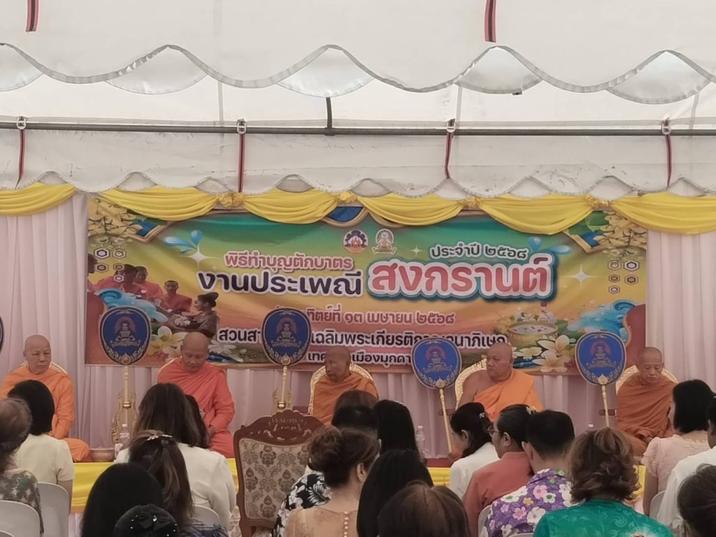 เข้าร่วมพิธีทำบุญตักบาตรประเพณีสงกรานต์ ๒๕๖๘ โดยมีผู้ว่าราชการจังหวัด หัวหน้าส่วนราชการ ข้าราชการทุกหน่วยงาน พ่อค้าและประชาชน ร่วมพิธีดังกล่าว ณ สวนสาธารณะเฉลิมพระเกียรติจ.มุกดาหาร อ.เมือง จ.มุกดาหาร