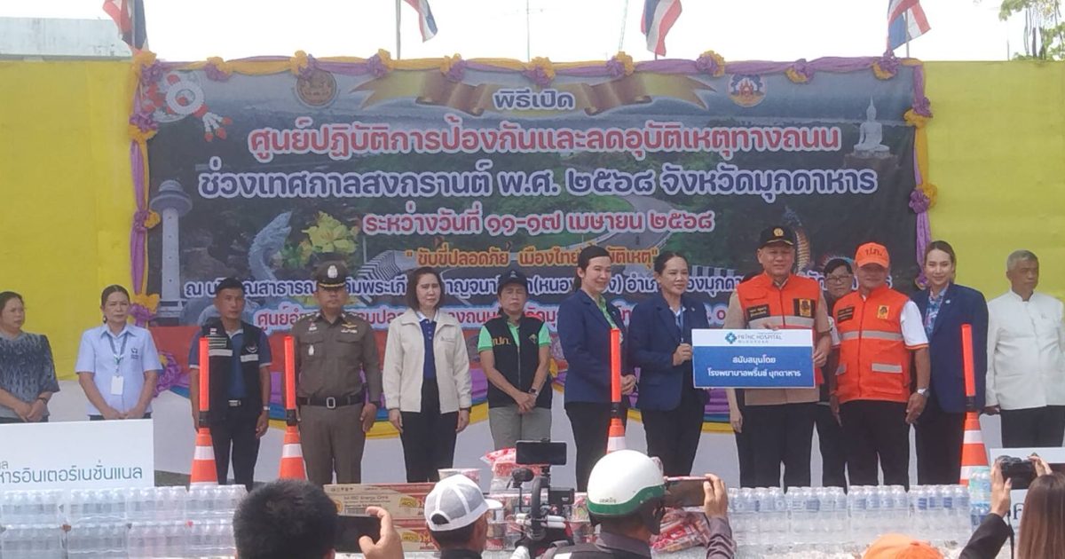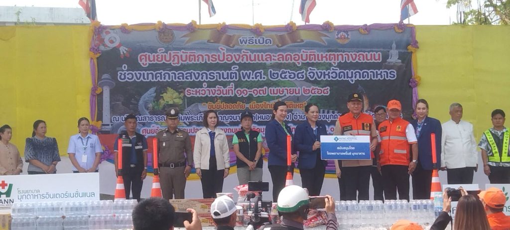 พ.ต.อ.ประยุทธ์ เรือนทองคำ ผกก.สภ.เมืองมุกดาหาร พ.ต.ท.คมกริช วงษ์ชารี รอง ผกก.ป.ฯ พ.ต.ต.ภาคภูมิ หมื่นราชา สวป.(ชส.)ฯ พร้อมด้วย ข้าราชการตำรวจจิตอาสา สภ.เมืองมุกดาหาร ร่วมดำเนินกิจกรรมจิตอาสาฯ งานพิธีเปิดศูนย์ปฏิบัติการป้องกันและลดอุบัติเหตุทางถนน ช่วงเทศกาลสงกรานต์ ปี ๒๕๖๘ โดยมี นายวรญาณ บุญณราช ผู้ว่าราชการจังหวัดมุกดาหาร เป็นประธานฯ ณ สวนสาธารณะเฉลิมพระเกียรติกาญจนาภิเษก ต.มุกดาหาร อ.เมืองฯ จ.มุกดาหาร