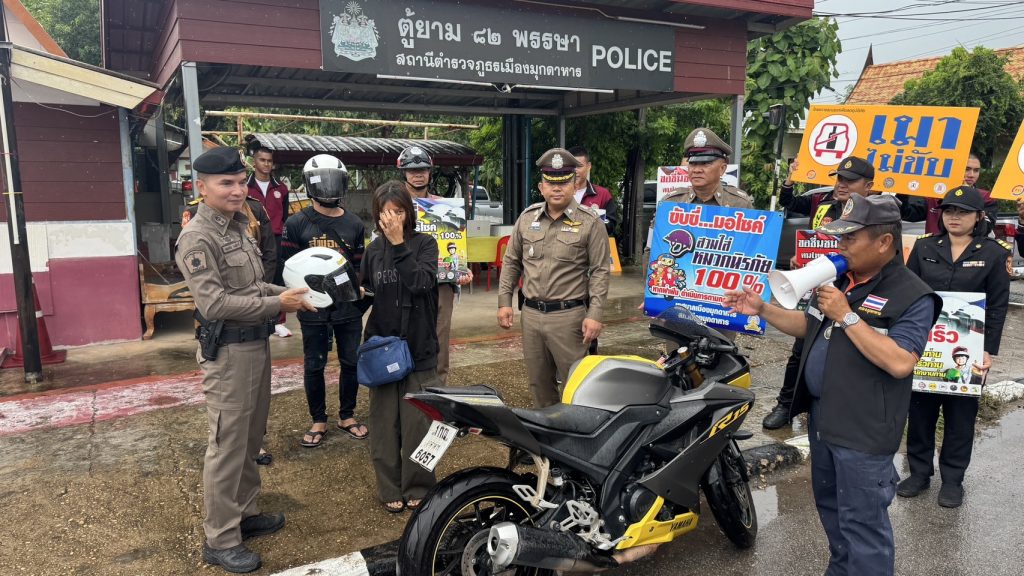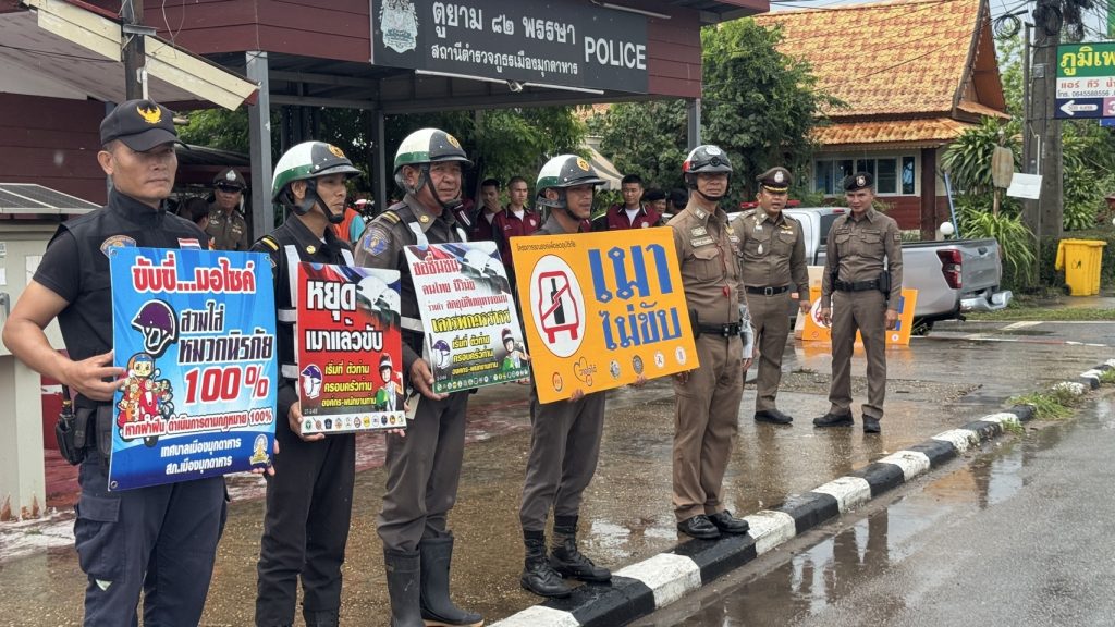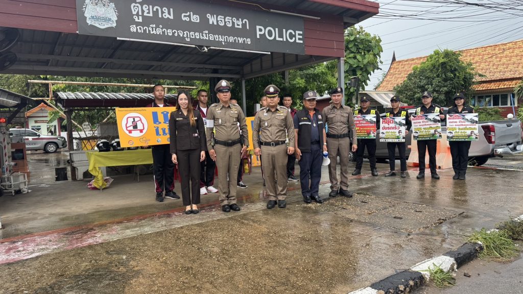 ร่วมกับเจ้าหน้าที่จราจร กำลังพลตู้ยาม82พรรษา เทศบาล ขนส่ง ฝ่ายปกครอง ปพ.จว.มุกดาหาร