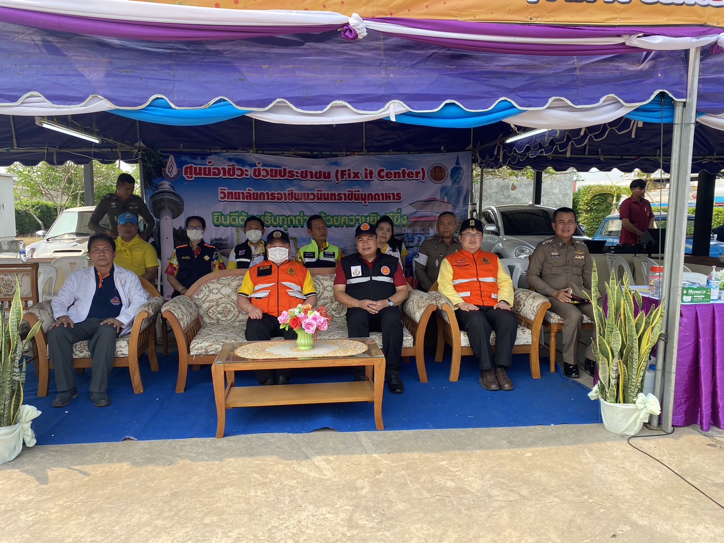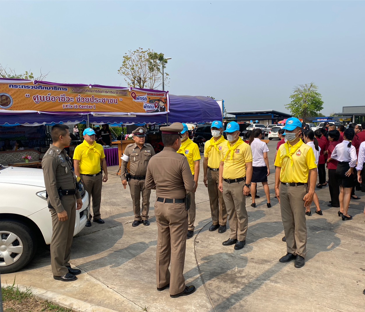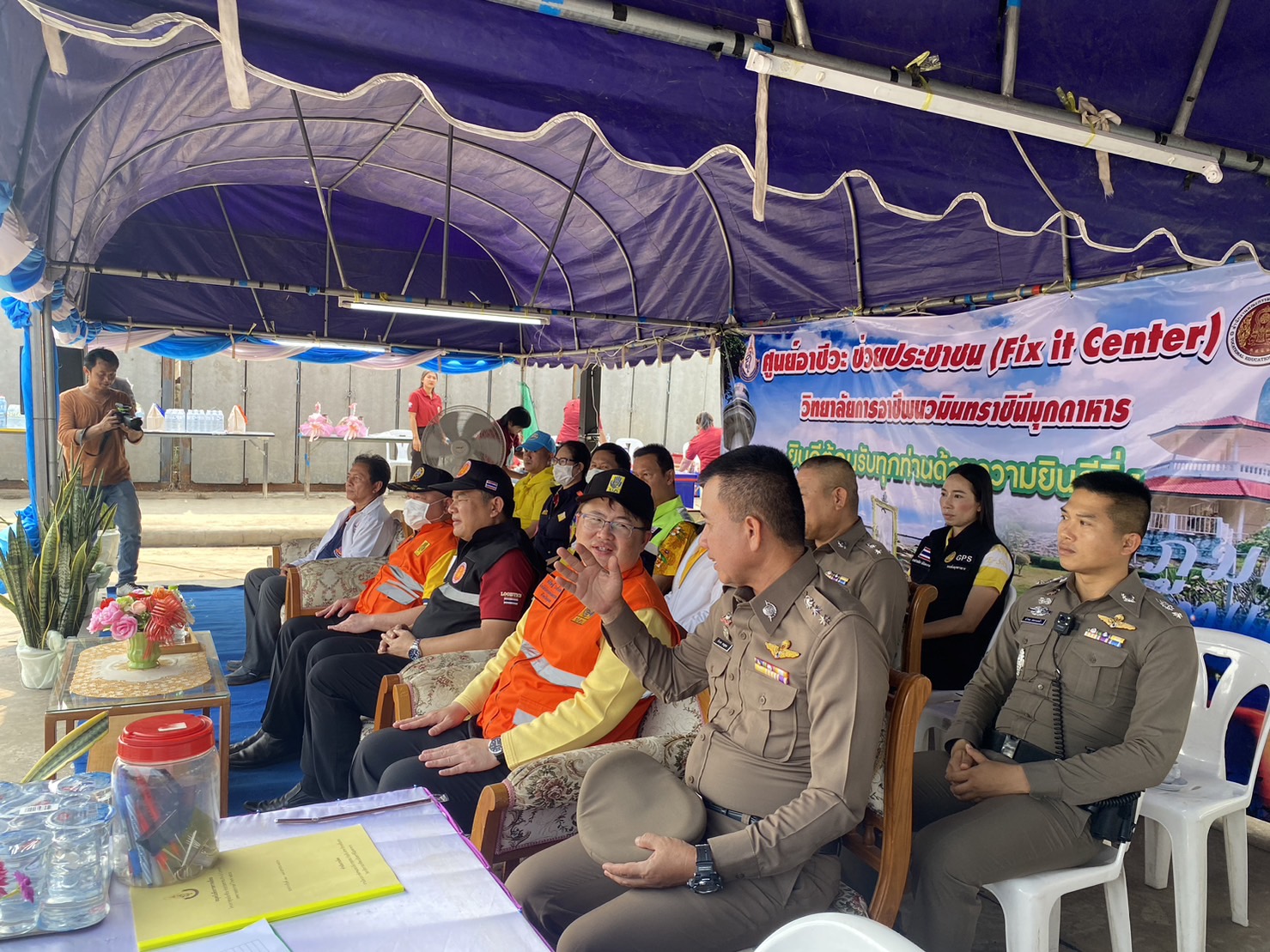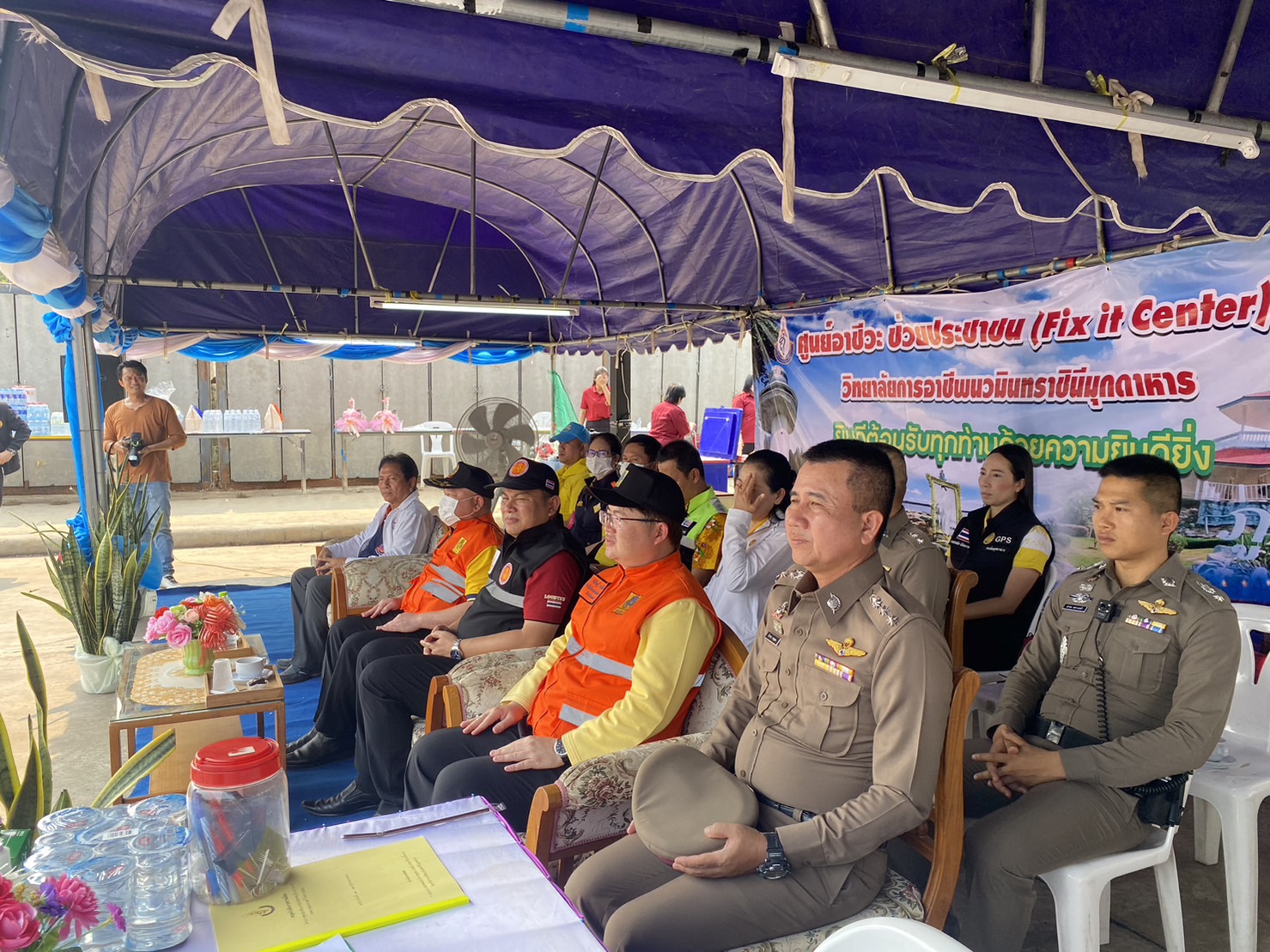 (-)ร.ต.อ.ทองดี เติมจิตร รอง สว.จร.สภ.เมืองมุกดาหาร ปฎิบัติหน้าที่ร้อยเวร ๒๐ พร้อมข้าราชการตำรวจจิตอาสา สายตรวจเขต ร่วมพิธีเปิด “ศูนย์อาชีวะ ช่วยประชาชน” (Fix it center) วิทยาลัยการอาชีพนวมินทราชินีมุกดาหาร ช่วงเทศกาลสงกรานต์ พ.ศ.๒๕๖๖ ณ บริเวณลานจอดรถ สถานีเติมน้ำมัน ปตท.นพดุงศูนย์ไหม อำเภอเมืองมุกดาหาร จังหวัดมุกดาหาร