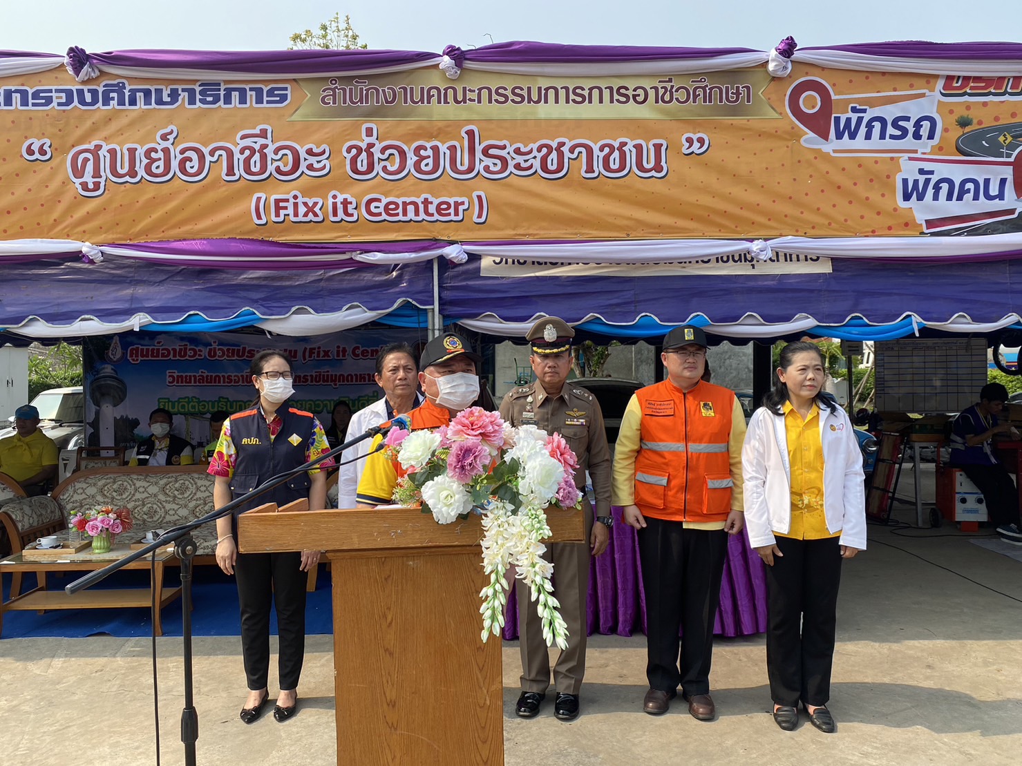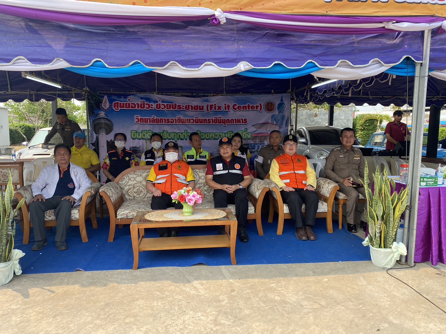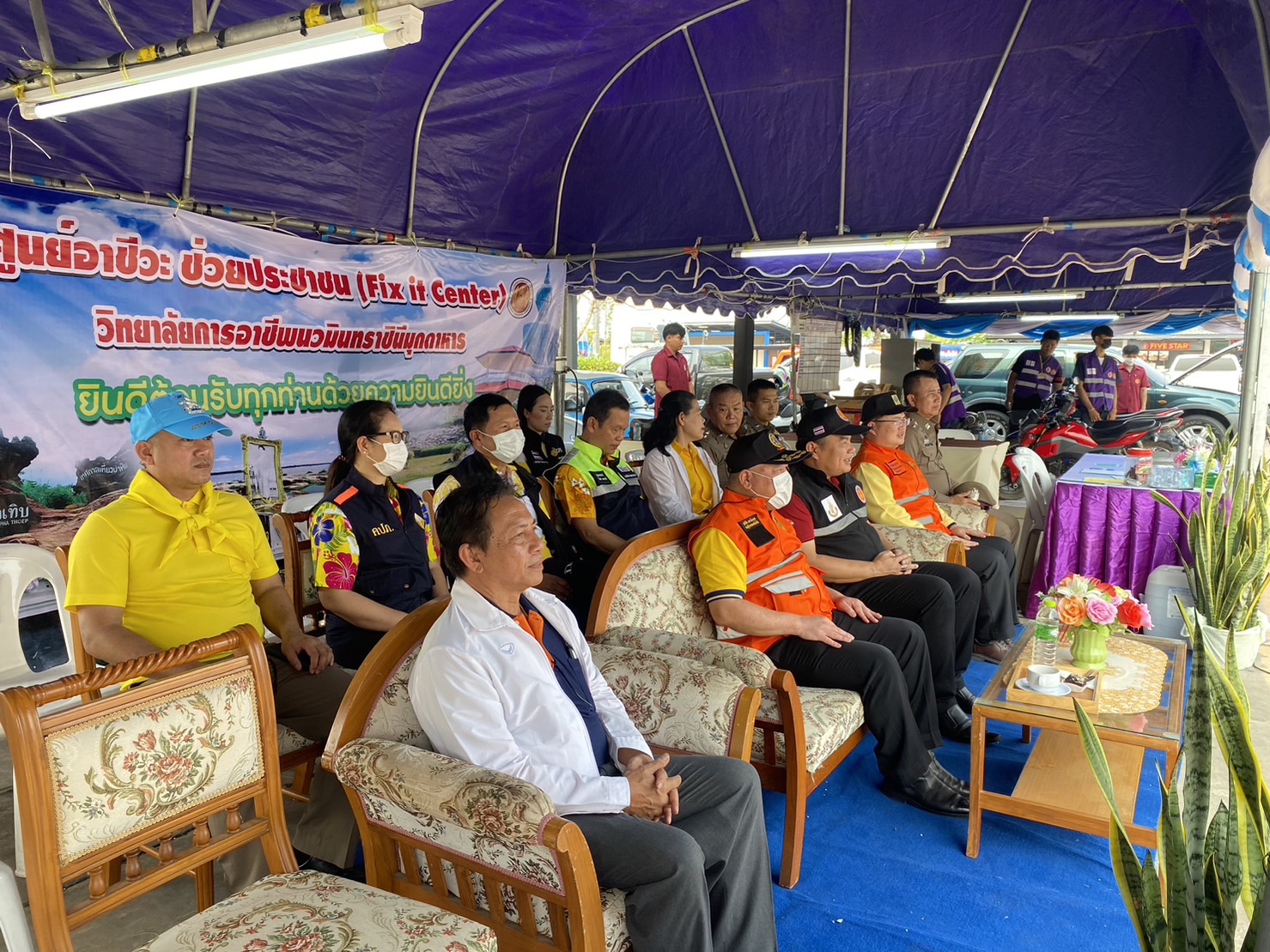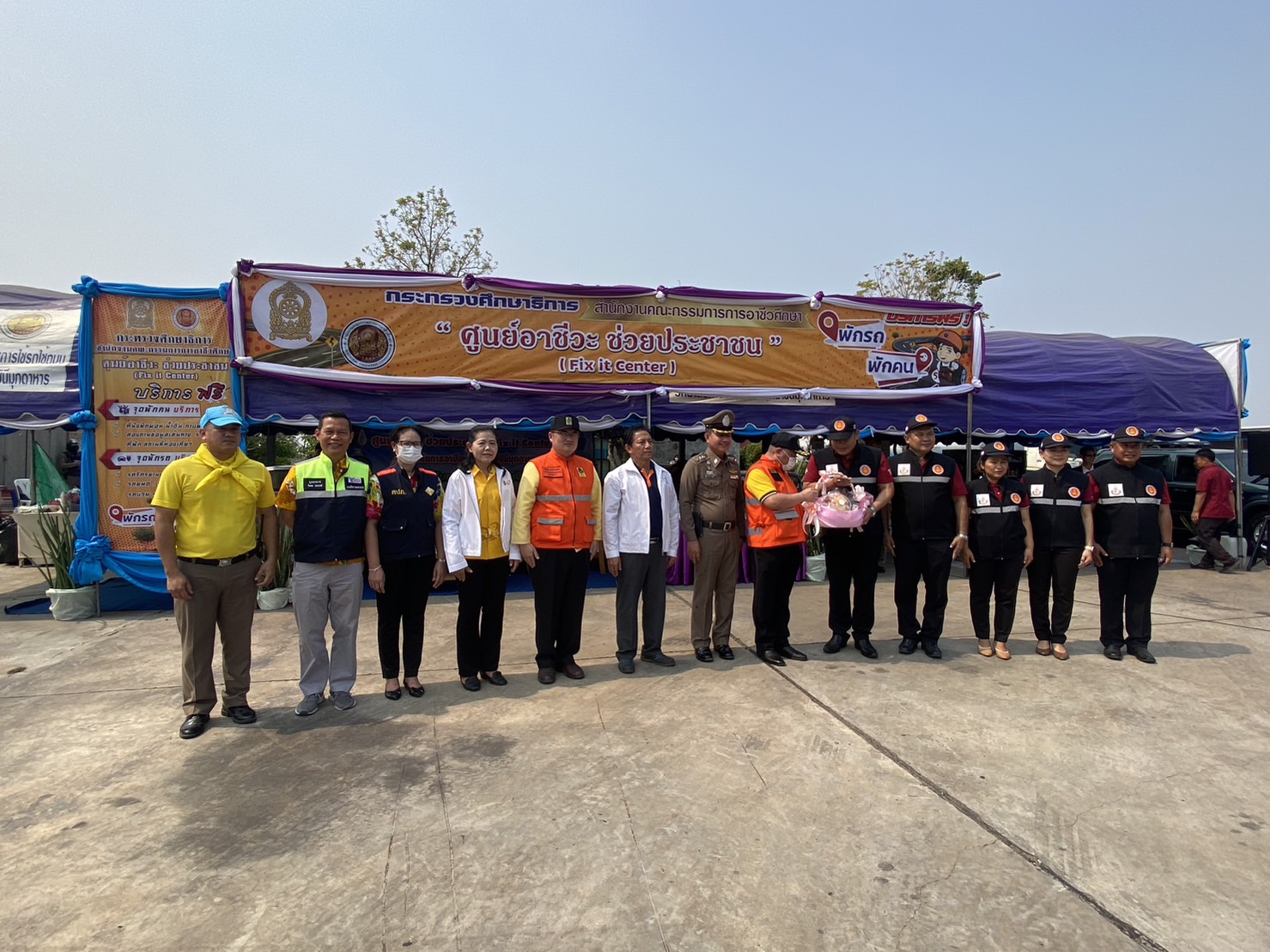 (-)ร.ต.อ.ทองดี เติมจิตร รอง สว.จร.สภ.เมืองมุกดาหาร ปฎิบัติหน้าที่ร้อยเวร ๒๐ พร้อมข้าราชการตำรวจจิตอาสา สายตรวจเขต ร่วมพิธีเปิด “ศูนย์อาชีวะ ช่วยประชาชน” (Fix it center) วิทยาลัยการอาชีพนวมินทราชินีมุกดาหาร ช่วงเทศกาลสงกรานต์ พ.ศ.๒๕๖๖ ณ บริเวณลานจอดรถ สถานีเติมน้ำมัน ปตท.นพดุงศูนย์ไหม อำเภอเมืองมุกดาหาร จังหวัดมุกดาหาร