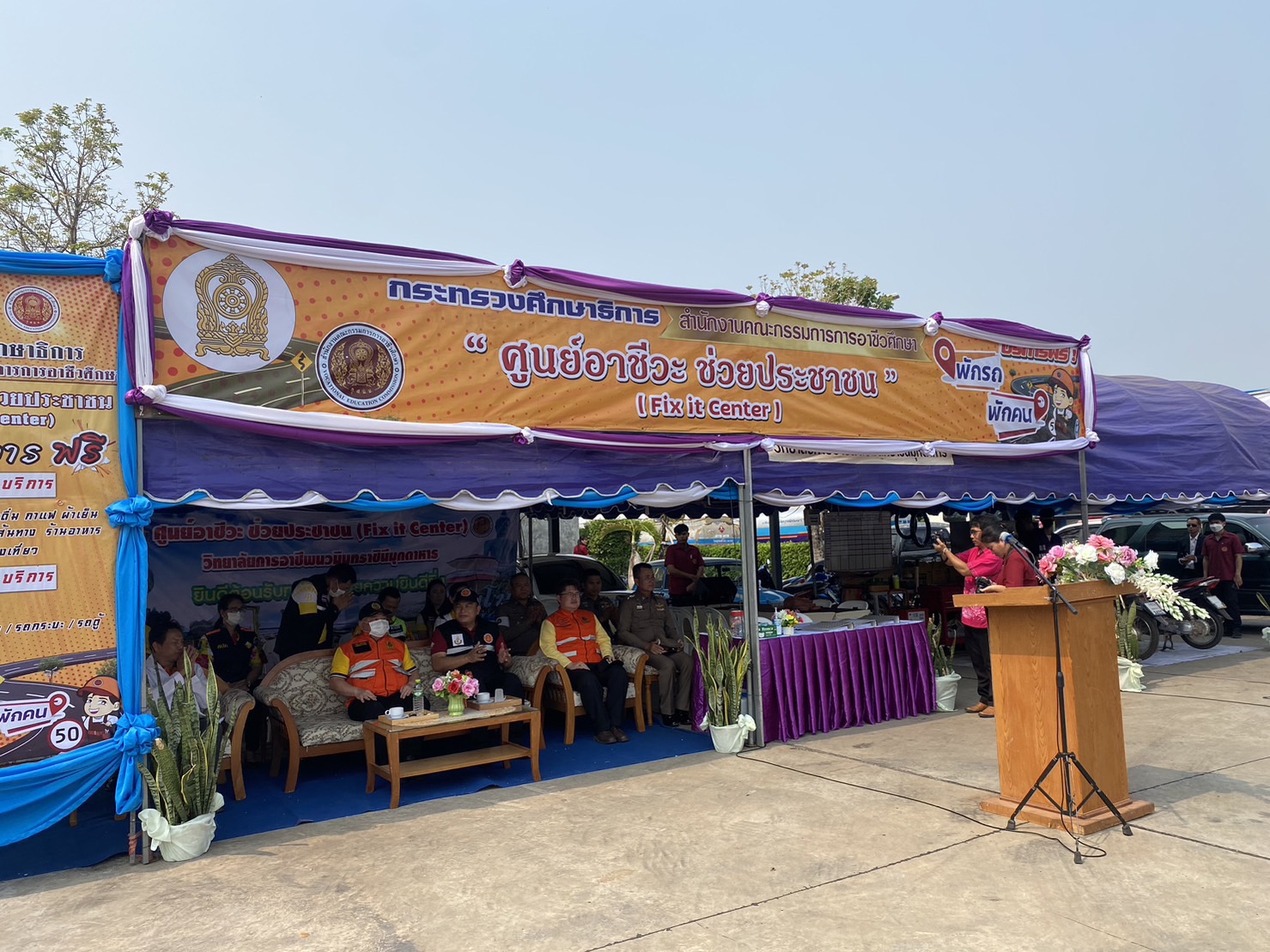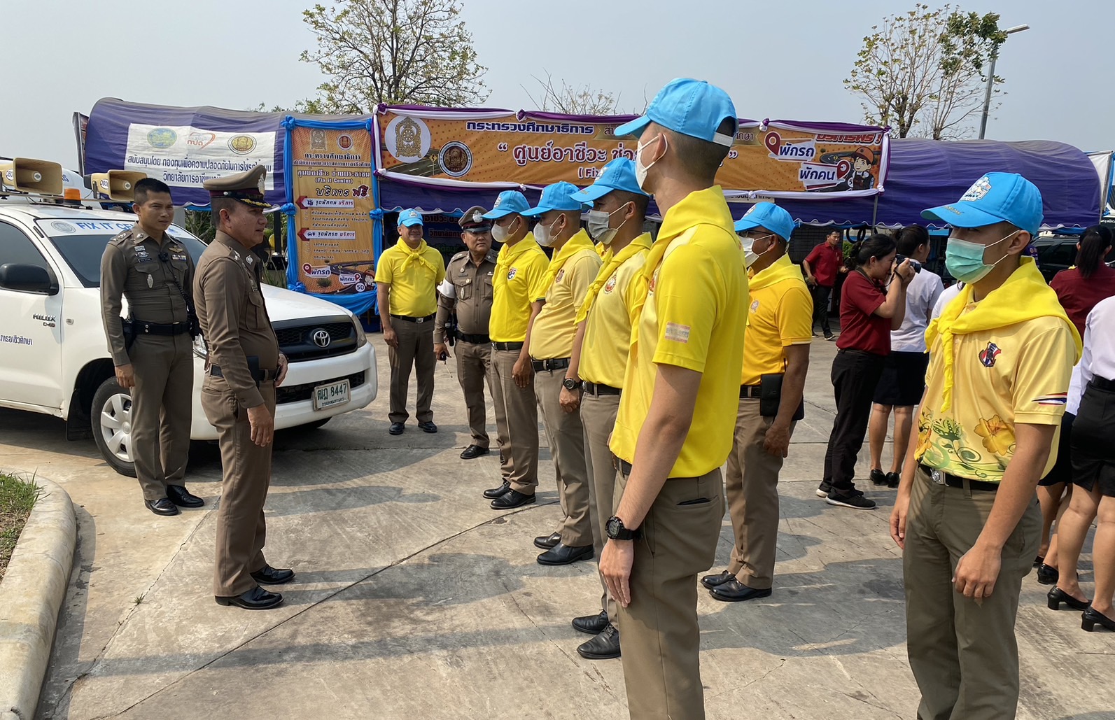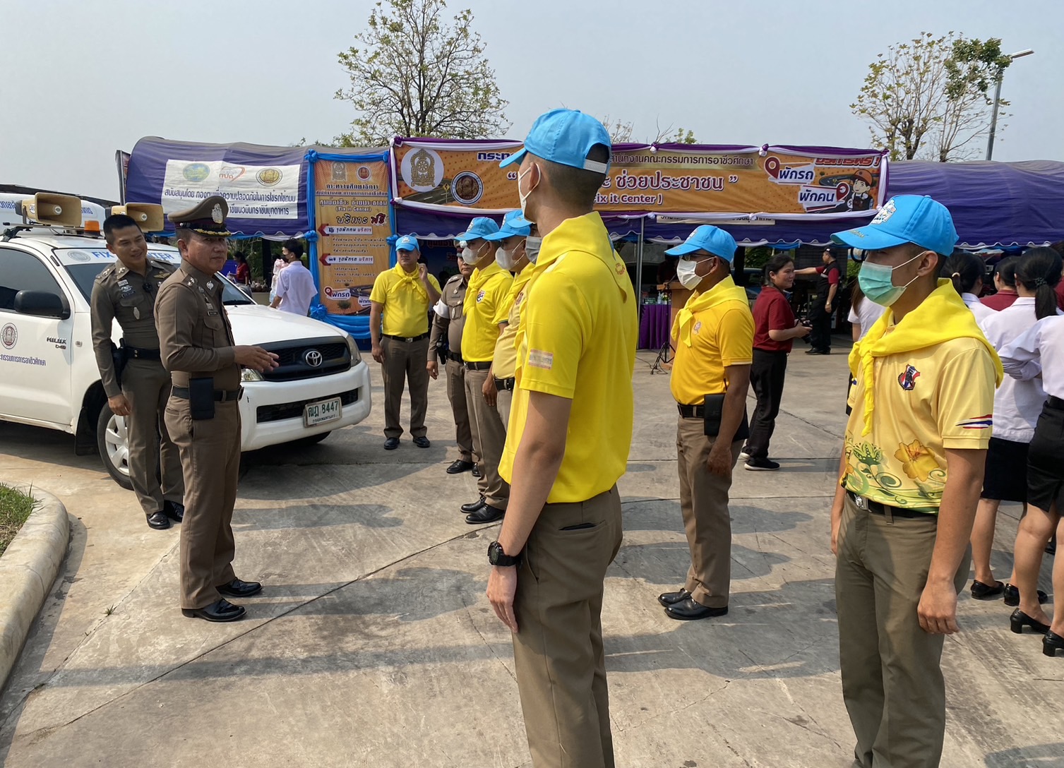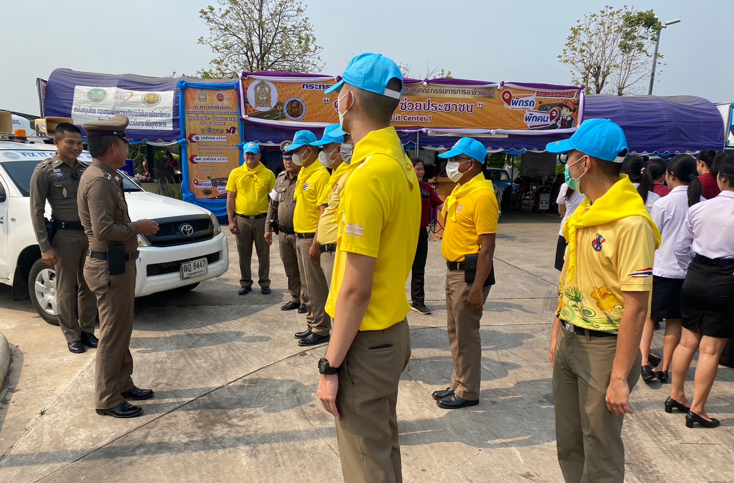 (-)ร.ต.อ.ทองดี เติมจิตร รอง สว.จร.สภ.เมืองมุกดาหาร ปฎิบัติหน้าที่ร้อยเวร ๒๐ พร้อมข้าราชการตำรวจจิตอาสา สายตรวจเขต ร่วมพิธีเปิด “ศูนย์อาชีวะ ช่วยประชาชน” (Fix it center) วิทยาลัยการอาชีพนวมินทราชินีมุกดาหาร ช่วงเทศกาลสงกรานต์ พ.ศ.๒๕๖๖ ณ บริเวณลานจอดรถ สถานีเติมน้ำมัน ปตท.นพดุงศูนย์ไหม อำเภอเมืองมุกดาหาร จังหวัดมุกดาหาร