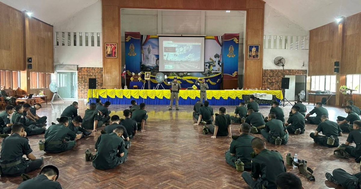รอง สวป.สภ.เมืองมุกดาหาร ปฏิบัติหน้าที่งานจราจร สภ.เมืองมุกดาหาร เมือง ๖๑๑ พร้อม ว.๓๐ จราจร ๖๑๑๔ ว.๔ วิทยากรบรรยาย วิชา “ยาเสพติด และวินัยจราจร” ให้กับ นักศึกษาวิชาทหาร (รด.) ชั้นปีที่ ๑ – ๓ ณ. ศูนย์ฝึกย่อย ห้องประชุมรวงผึ้ง โรงเรียนนวมินทราชูทิศ อีสานตำบลมุกดาหาร อำเภอเมืองมุกดาหาร จังหวัดมุกดาหาร ได้รับความสนใจจากผู้เข้าอบรมเป็นอย่างดี