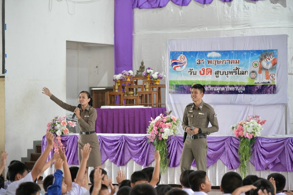 พ.ต.อ.ประยุทธ์ เรือนทองคำ ผกก.สภ.เมืองมุกดาหาร ,พ.ต.ท.คมกริช วงษ์ชารี รอง ผกก.ป.สภ.เมืองมุกดาหาร มอบหมายให้ พ.ต.ท.หญิง ธนิตตา โสดาภักดิ์ สว.อก.ฯ พร้อมด้วย ส.ต.ท.ธนวัฒน์ เบญมาตย์ ผบ.หมู่(ป.)สภ.เมืองมุกดาหาร ทำหน้าที่เป็นวิทยากรอบรมให้ความรู้แก่นักเรียนในประเด็นร่วมป้องกันเด็กและเยาวชนจากบุหรี่ไฟฟ้า เนื่องในวันงดสูบบุหรี่โลก ณ โรงเรียนมุกดาวิทยานุกูล