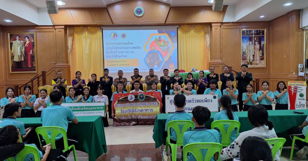 ภายใต้การอำนวยการของ พ.ต.อ.ประยุทธ์ เรือนทองคำ ผกก.สภ.เมืองมุกดาหาร พ.ต.ท.คมกริช วงษ์ชารี รอง ผกก.ป.ฯ มอบหมายให้ พ.ต.ต.ภาคภูมิ หมื่นราชา สวป.(ชส.)ฯ ร.ต.ท.อารมณ์ ชมภูวิเศษ รอง สว.(ป.)ฯ ทำหน้าที่เป็นวิทยากรอบรมให้ความรู้เกี่ยวกับ โทษ พิษภัย ของยาเสพติด ให้กับนักเรียนโรงเรียนมุกดาหาร จำนวน ๒๐๐ คน ตามโครงการเยาวชนไทย ร่วมใจห่างไกลยาเสพติด ประจำปี พ.ศ.๒๕๖๗ ณ ห้องประชุมโรงเรียนมุกดาหาร ต.มุกดาหาร อ.เมืองฯ จ.มุกดาหาร