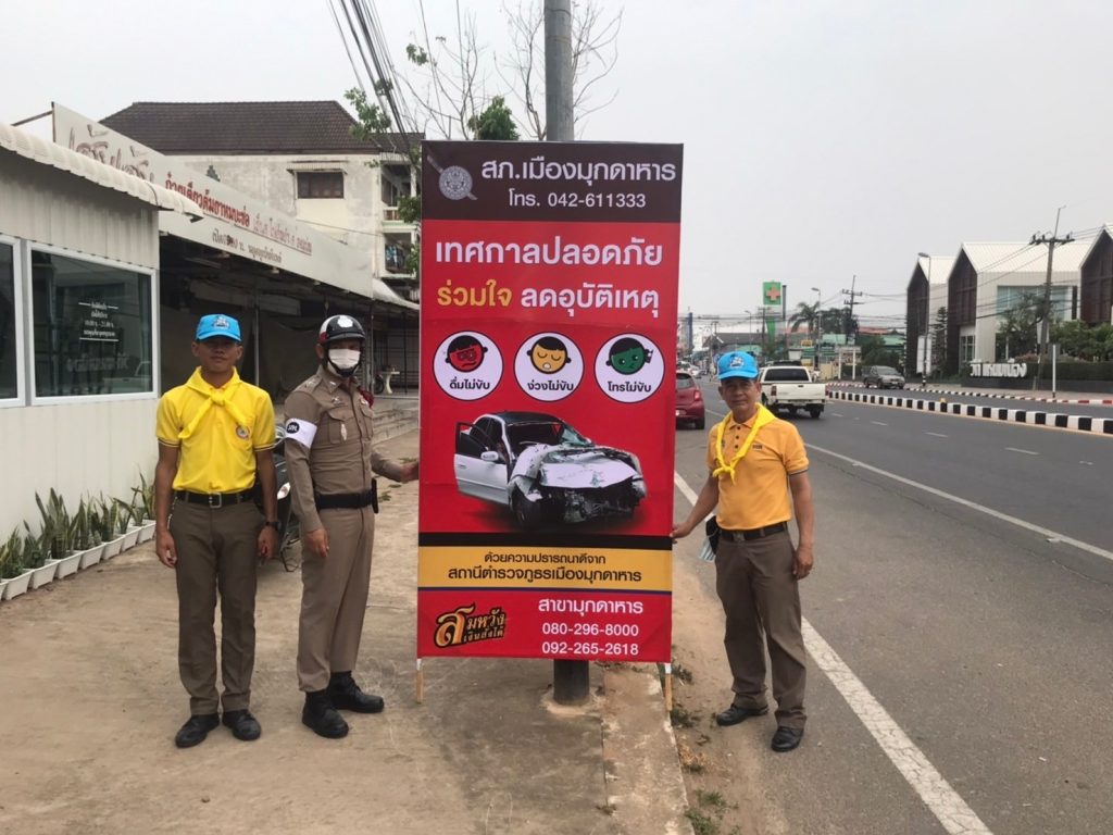 ออกติดป้ายรณรงค์ป้องกันอุบัติเหตุทางถนน ช่วงเทศกาลสงกรานต์ ปี ๒๕๖๖ 8 เมษายน 2566 โดย admin / ข่าวประชาสัมพันธ์,ข่าวภารกิจผู้บังคับบัญชา เรียนผู้บังคับบัญชาวันที่ ๗ เม.ย.๒๕๖๖เวลา ๐๙.๐๐ น.ภายใต้การอำนวยการของพ.ต.อ.เจษฎาวิทย์ อินทร์ประพันธ์ผกก.สภ.เมืองมุกดาหาร มอบหมายให้พ.ต.ท.อุกฤษฎ์ สังฆะมณี รอง ผกก.ป.ฯ พ.ต.ท.นิรัณธกรณ์ ทานวรวิทย์ สว.จร.ฯ พ.ต.ท.อำพร สพานหล้า สวป.ฯ พร้อมด้วย ข้าราชการตำรวจจราจร และตำรวจชุดจิตอาสาจราจร สภ.เมืองมุกดาหาร ออกติดป้ายรณรงค์ป้องกันอุบัติเหตุทางถนน ช่วงเทศกาลสงกรานต์ ปี ๒๕๖๖ ภายในเขตเทศบาลเมืองมุกดาหารผู้ร่วมปฏิบัติ๑.ข้าราชการตำรวจจิตอาสา จำนวน ๑๐ นาย๒.ติดป้ายฯ จำนวน ๒๐ ป้ายจึงเรียนมาเพื่อโปรดทราบ Facebook iconFacebookTwitter iconTwitterLINE iconLine