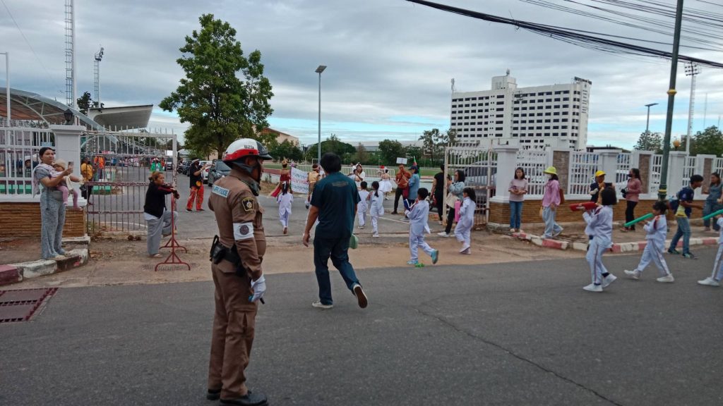 วันที่ ๑๓ ธ.ค.๒๕๖๗ เวลา ๐๖.๓๐ – ๐๙.๐๐ น. พ.ต.ท.คมกริช วงษ์ชารี รอง ผกก.ป.สภ.เมืองมุกดาหาร เมือง ๒ ร.ต.อ.ไพรบูรณ์ เทพนา รอง สวป.สภ.เมืองมุกดาหาร ปฏิบัติหน้าที่งานจราจร สภ.เมืองมุกดาหาร เมือง ๖๑๑ พร้อม ว.๓๐ จราจร ร่วม ว.๔ รักษาความปลอดภัยและอำนวยความสะดวกการจราจร ขบวนพาเหรดนักกีฬา โรงเรียนอนุบาลสุวพิชญ์ ว.๒๑ หน้าศาลหลักเมือง ว.๒๕ สนามกีฬากลางจังหวัดมุกดาหาร การจราจรคล่องตัว เหตุการณ์ทั่วไปปกติ