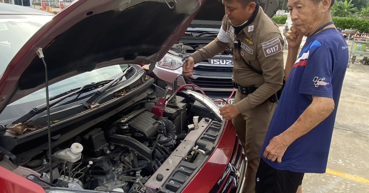 เจ้าหน้าที่ตำรวจจราจรช่วยเหลือรถปชช.สตาร์ทไม่ติด