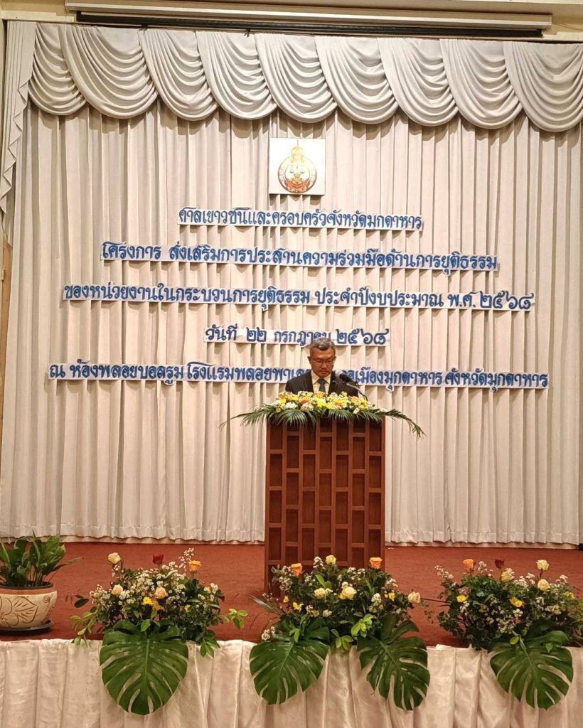 พ.ต.อ.ประยุทธ์ เรือนทองคำ ผกก.สภ.เมืองมุกดาหาร ร่วมประชุมโครงการส่งเสริมการประสานความร่วมมือด้านการยุติธรรมของหน่วยงานในขบวนการยุติธรรม (ศาลเยาวชนและครอบครัวจังหวัดมุกดาหาร) ประจำปี 2568 ณ โรงแรมพลอยพาเลซ อ.เมือง จ.มุกดาหาร