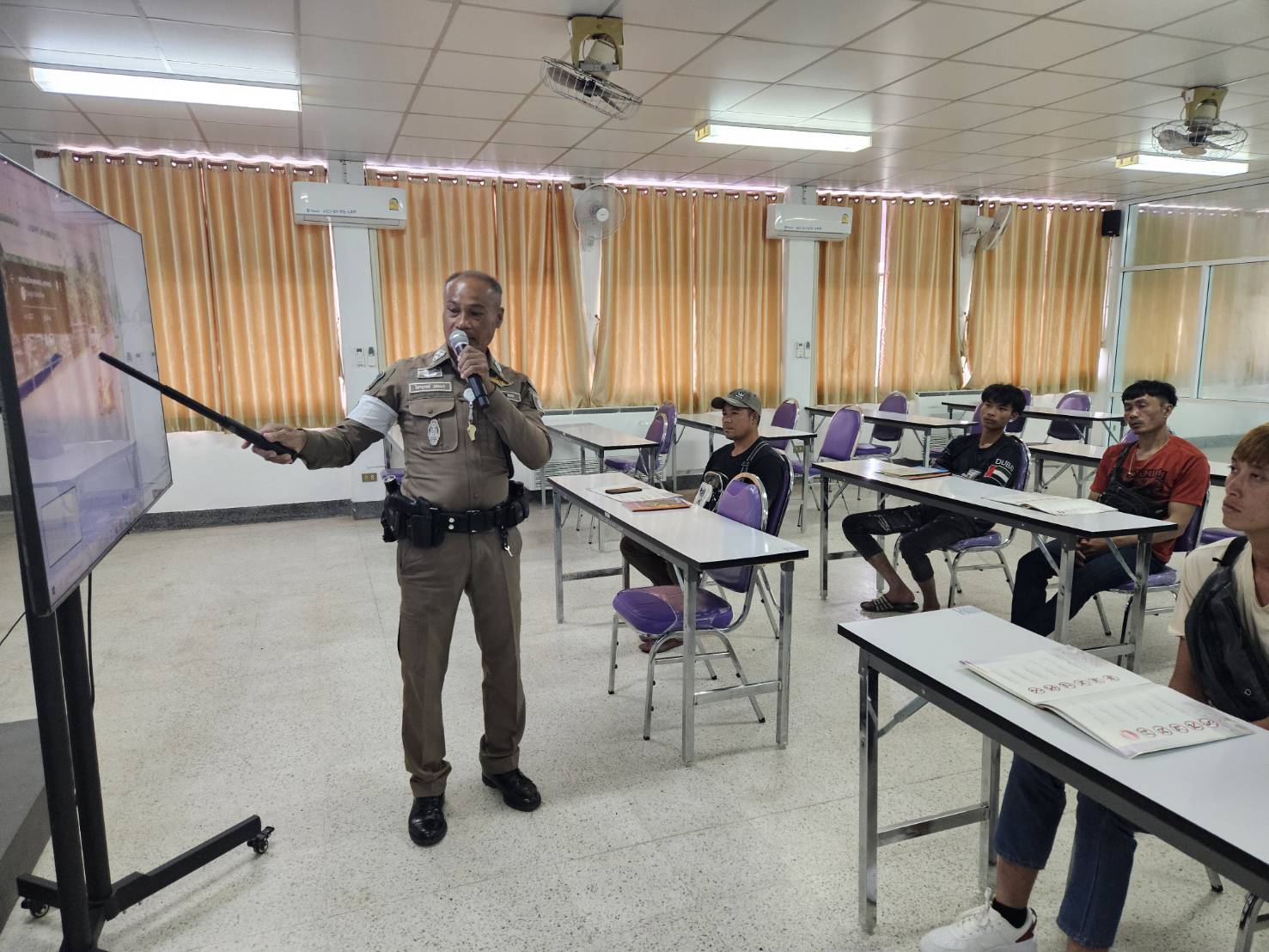 วิทยากรให้ความรู้ พ.ร.บ.จราจร ผู้เข้าอบรมสอบใบอนุญาตขับขี่