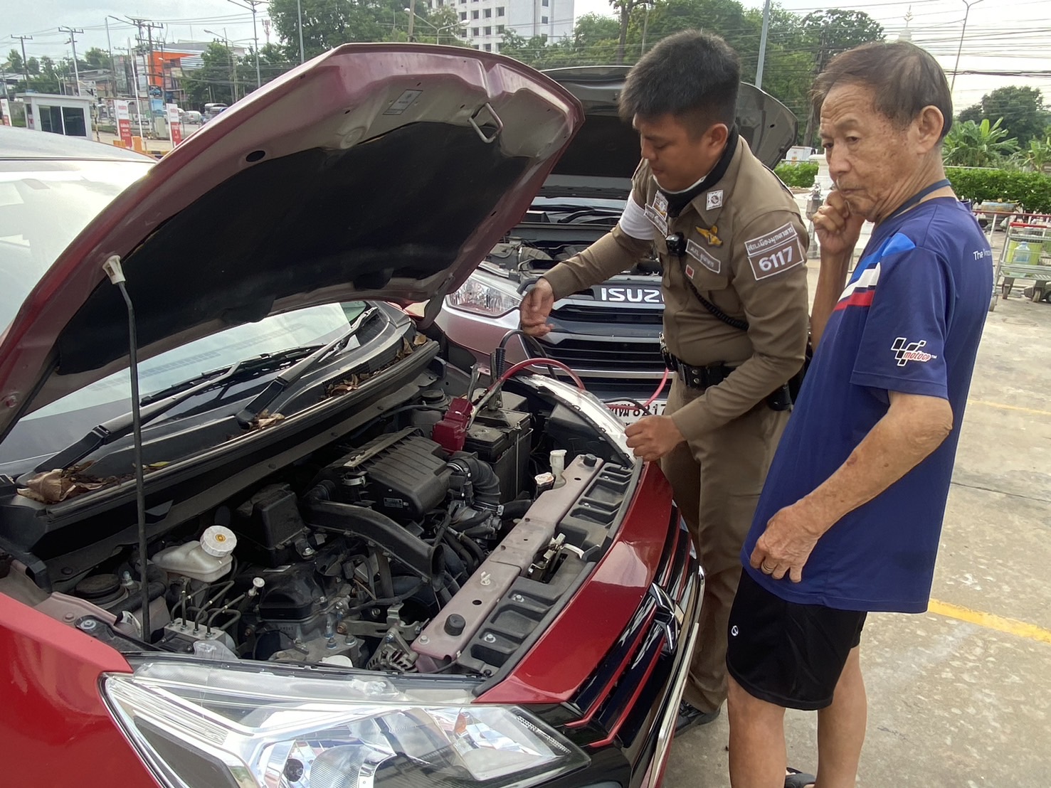 เจ้าหน้าที่ตำรวจจราจรช่วยเหลือรถปชช.สตาร์ทไม่ติด