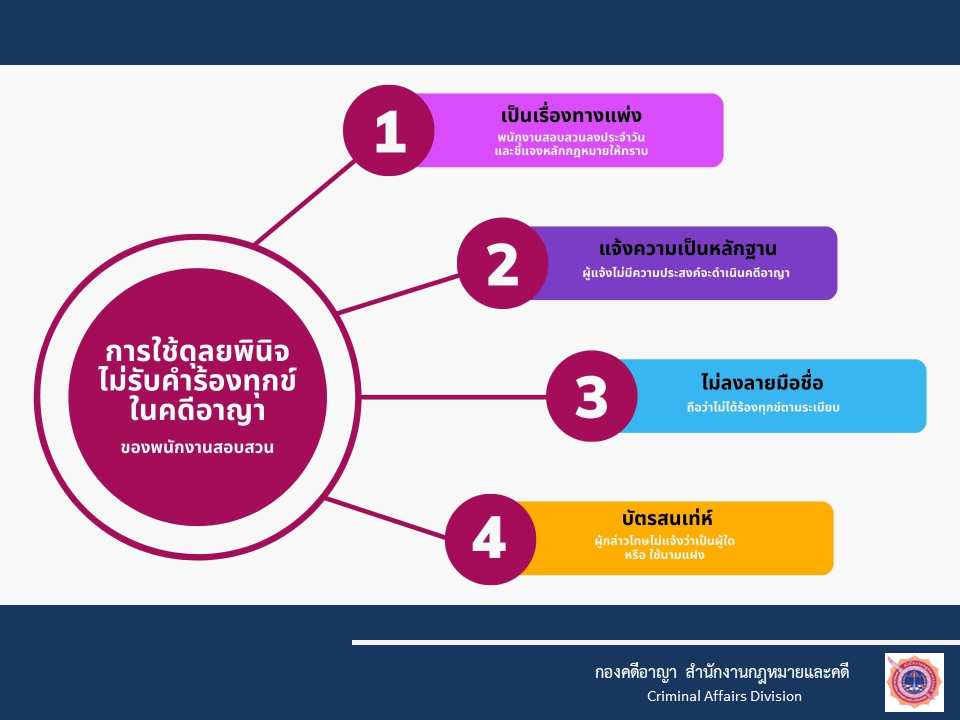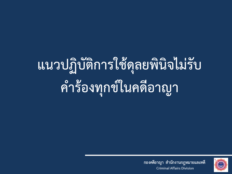 O14 แนวปฏิบัติในการใช้ดุลยพินิจไม่รับคำร้องทุกข์ในคดีอาญา