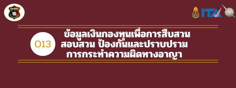 O13 ข้อมูลเงินกองทุนเพื่อการสืบสวน สอบสวน การป้องกันและปราบปราม การกระทำความผิดทางอาญา