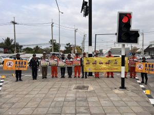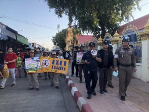 วันที่ ๑๗ มี.ค.๒๕๖๘ร.ต.อ.กำธร โชติประเดิม รอง สว.จร.สภ.เมืองมุกดาหารร่วมกับ นายอดุล ศิริมันต์ หัวหน้าฝ่ายป้องกันฯ จนท.เทศกิจ ทม.มุกดาหาร / กต.ตร.ฯรณรงค์ สร้างความตระหนักรู้ ด้านการป้องกันอุบัติเหตุทางถนน ด้านการขับขี่ปลอดภัย ให้ประชาชน ที่ใช้รถใช้ถนน ได้ยึดถือและปฎิบัติตามกฎหมายจราจร และรณรงค์ขอความร่วมมือ กับผู้ที่ขับรถจักรยานยนต์ ต้องสวมหมวกนิรภัย ๑๐๐ %บริเวณสแยกไฟแดง ธ.ก.ส. ถ.ชยางกูร